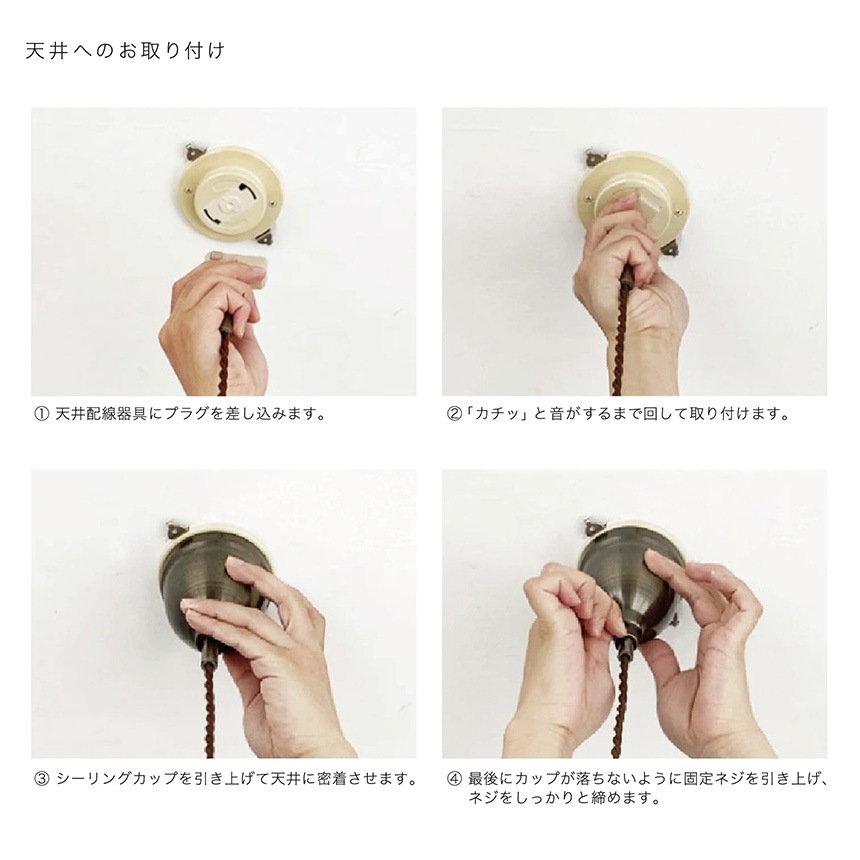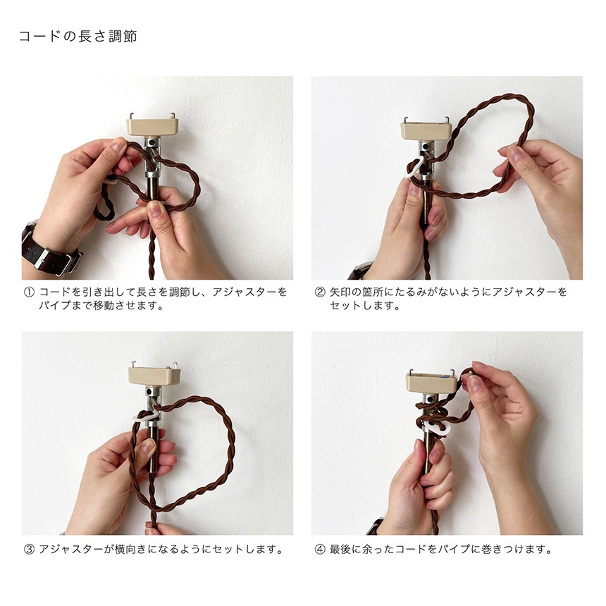 吊るす高さは調節可能で、余ったコードはシーリングカップ内にすっきり収納できます。