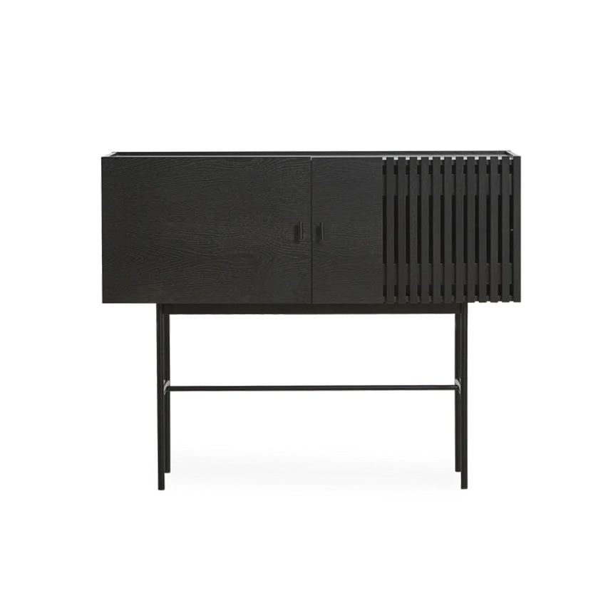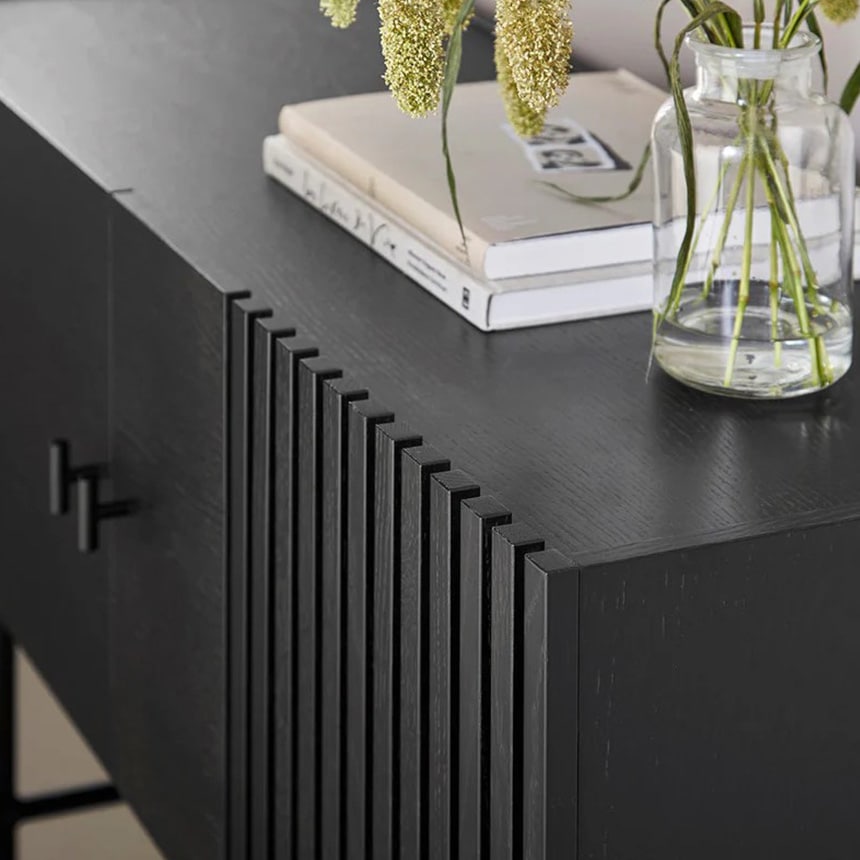 「アレイ サイドボード」は、現代建築に多く見られる木製スレート外装からインスピレーションを得たデザイン。