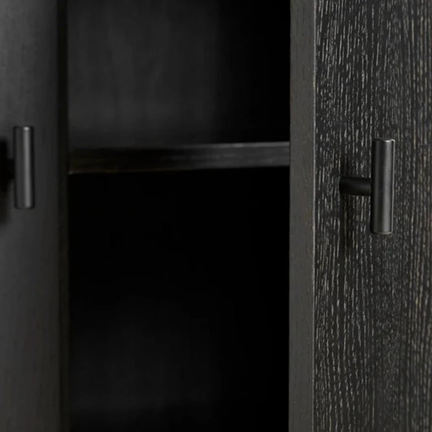 金属製の安定した脚部がキャビネットを床面から持ち上げ、軽やかな印象を演出。