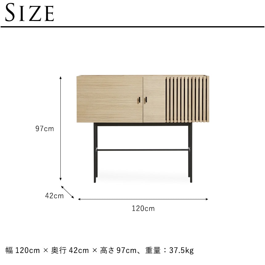 | サイズ/重さ | 幅120cm×奥行42cm×高さ97cm、重量:37.5kg |