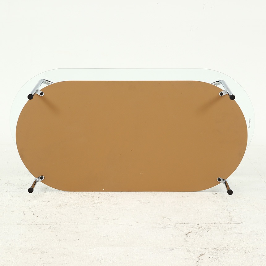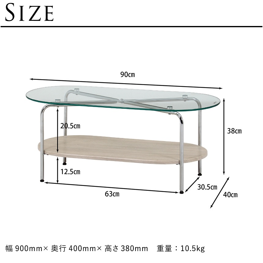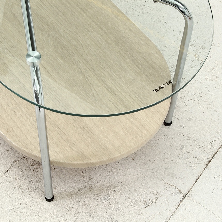 ガラス天板がアクセントになった、柔らかい丸いフォルムが特徴。