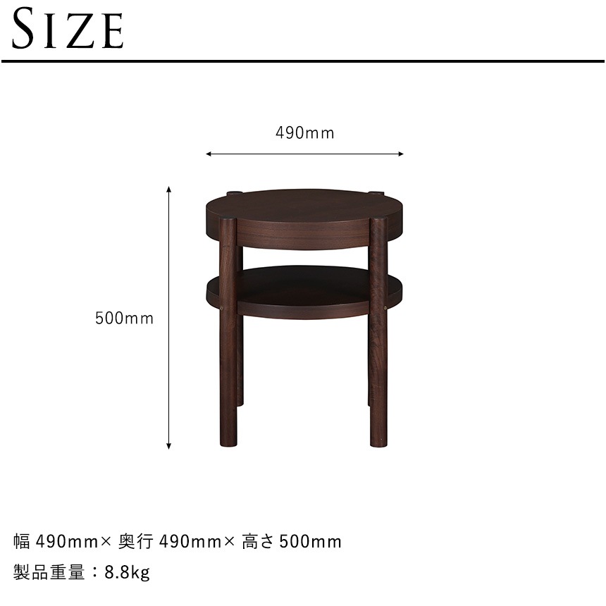サイドテーブル 丸型 日本製 木製 直径49cm