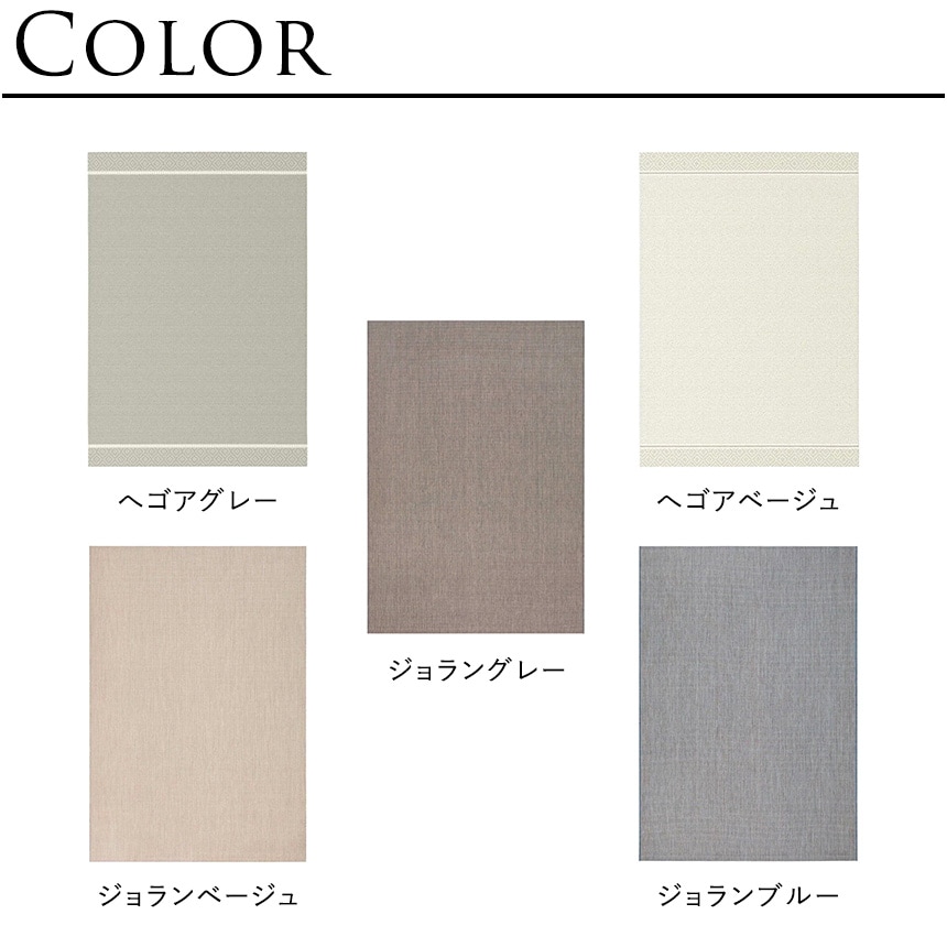 | カラー | へゴアグレー、へゴアベージュ、ジョラングレー、ジョランベージュ、ジョランブルー |