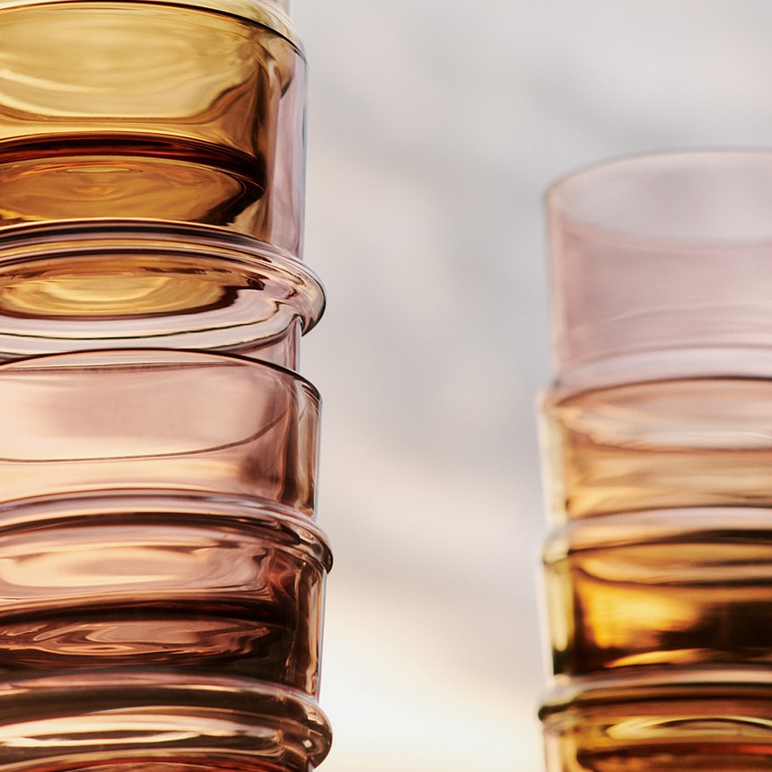 吹きガラスで丁寧に作られた無垢のガラスには、職人の手によるわずかな揺らぎや表情が宿り、1点ごとに独自の個性を持っています。