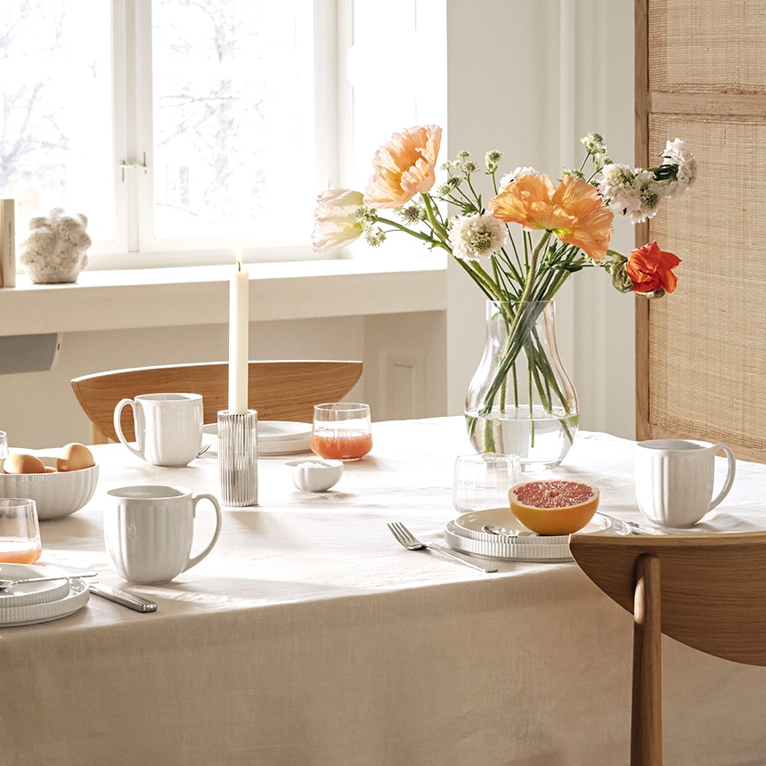 備考シグヴァルド ベルナドッテ (Sigvard Bernadotte) の特徴的な溝模様からインスピレーションを得た、シンプルなマグ。普段使いにもぴったりです。カーブしたハンドルが手になじみ、質感のあるディテールがデザインに魅力を加えています。ホワイトポーセリンに釉薬を施した、丈夫でエレガントなマグの2個セット。食器洗浄機に対応しています。