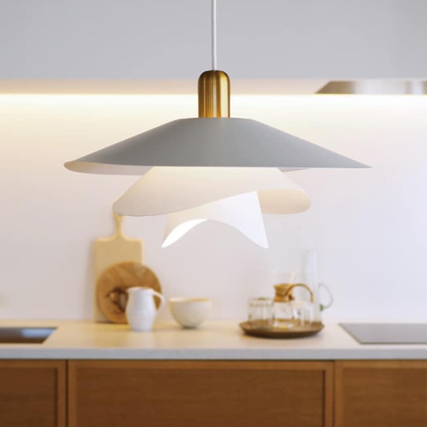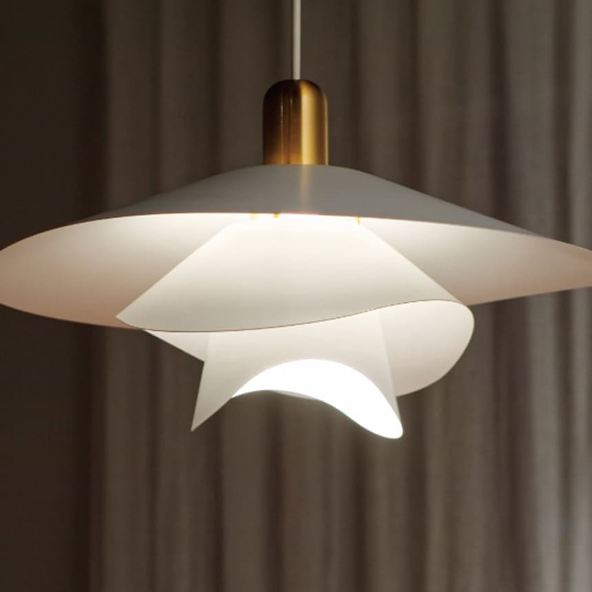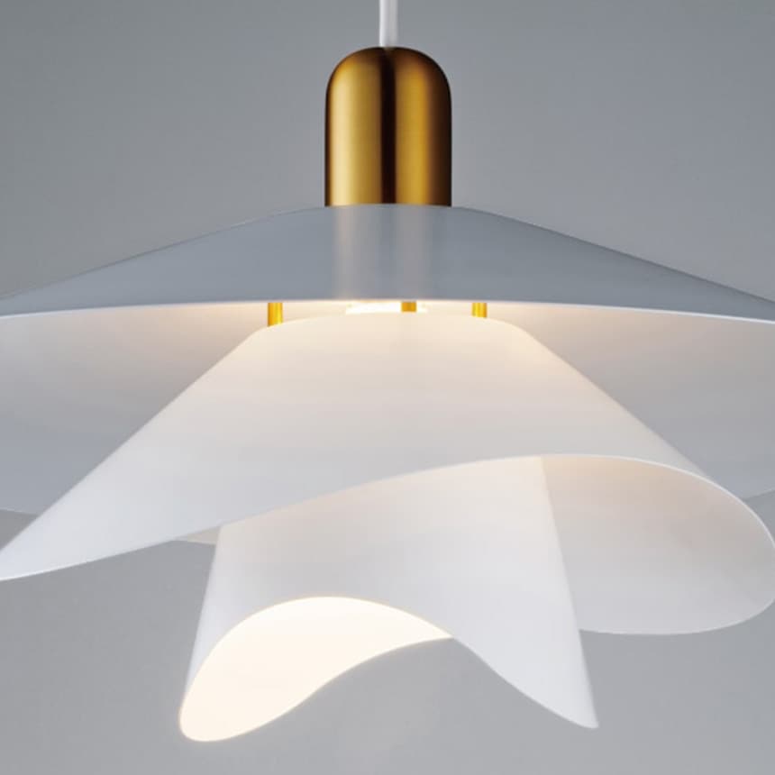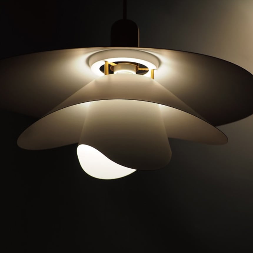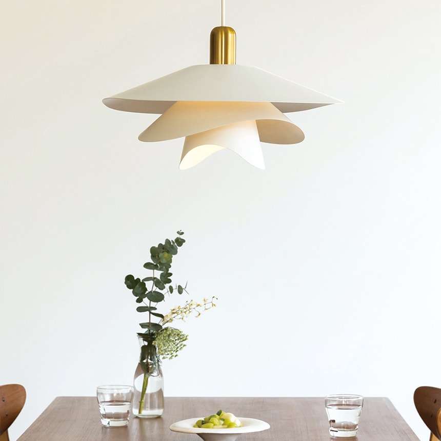 風に舞う花びらのような曲線が印象的なフェミニンデザインのペンダントライト。