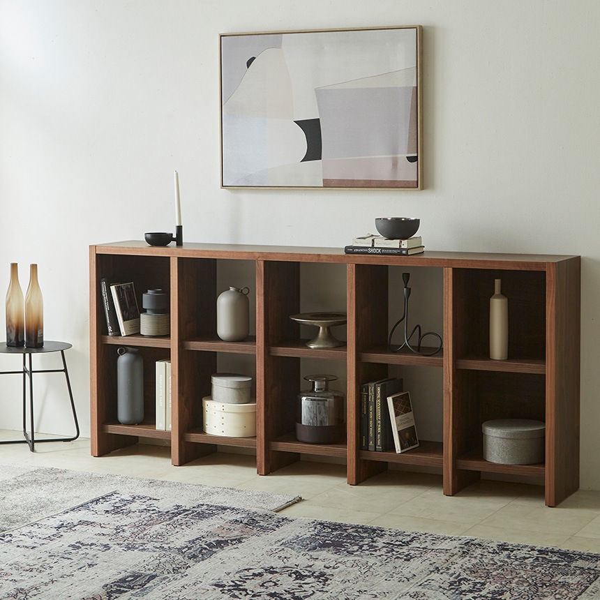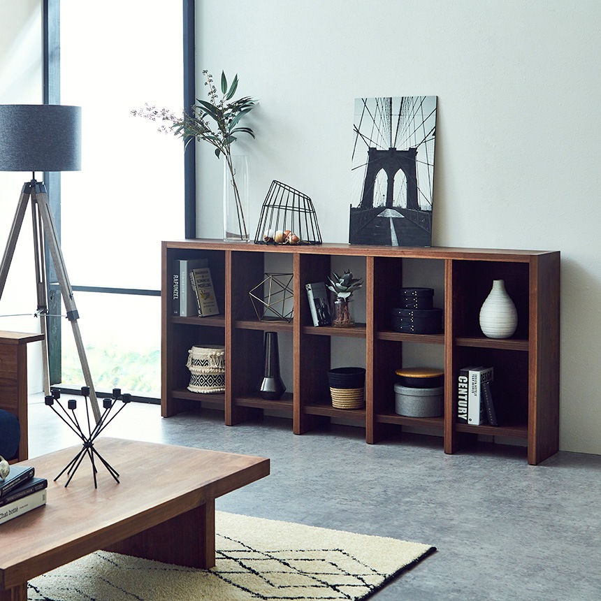 面材にウォールナット無垢材を使用し、木のぬくもりを感じるシェルフ。