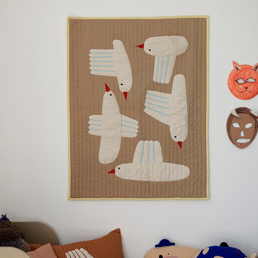 ユニークな鳥のデザインが印象的な「バード キルトブランケット」は、