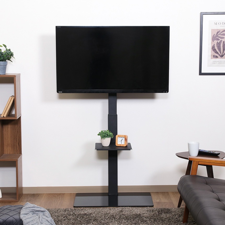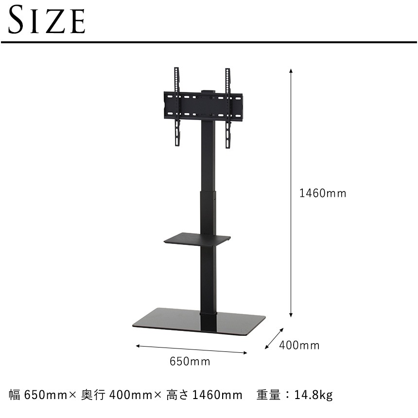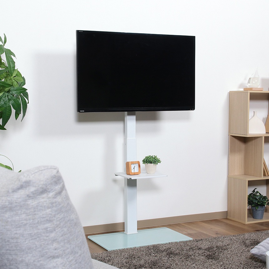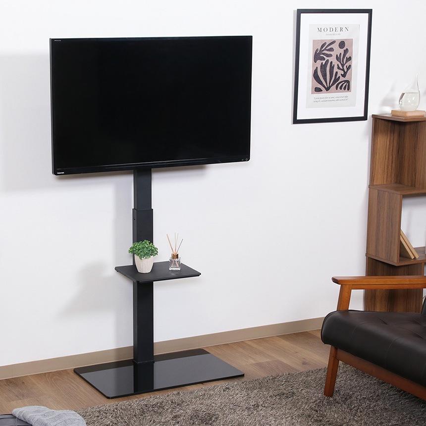 モニタースタンド おしゃれ 床置き 棚付き ガラス テレビスタンド