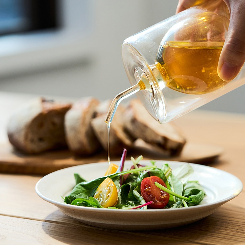 オリーブオイルなどの食用油を移し替えて使用することで、量を調整しやすくピンポイントで注ぎやすいのも特長。高いデザイン性と使いやすさが両立したアイテムです。