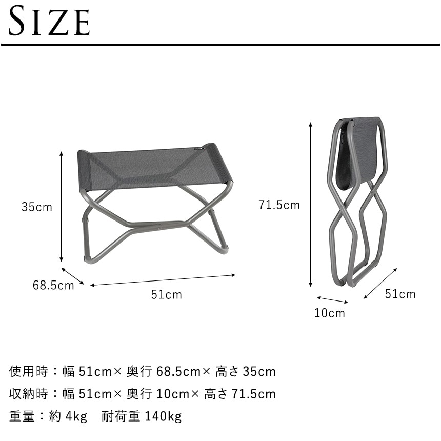 チェアやスツールとして単体使用も可能で、アウトドア・インテリアのアクセントにも最適です。