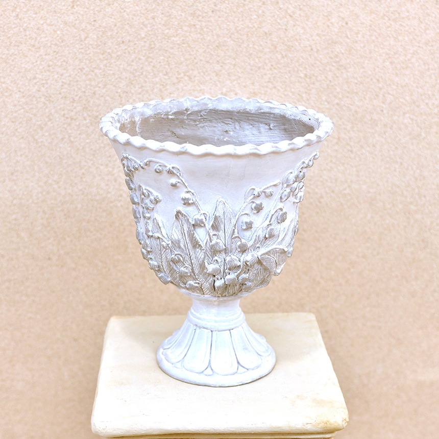 側面にスズランを立体的にあしらった、おしゃれなゴブレット型プランターです。