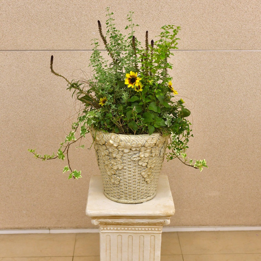 | 備考 | 手作りの編みカゴを基調に、側面にフラワーモチーフとした可憐で幻想的なプランターです。