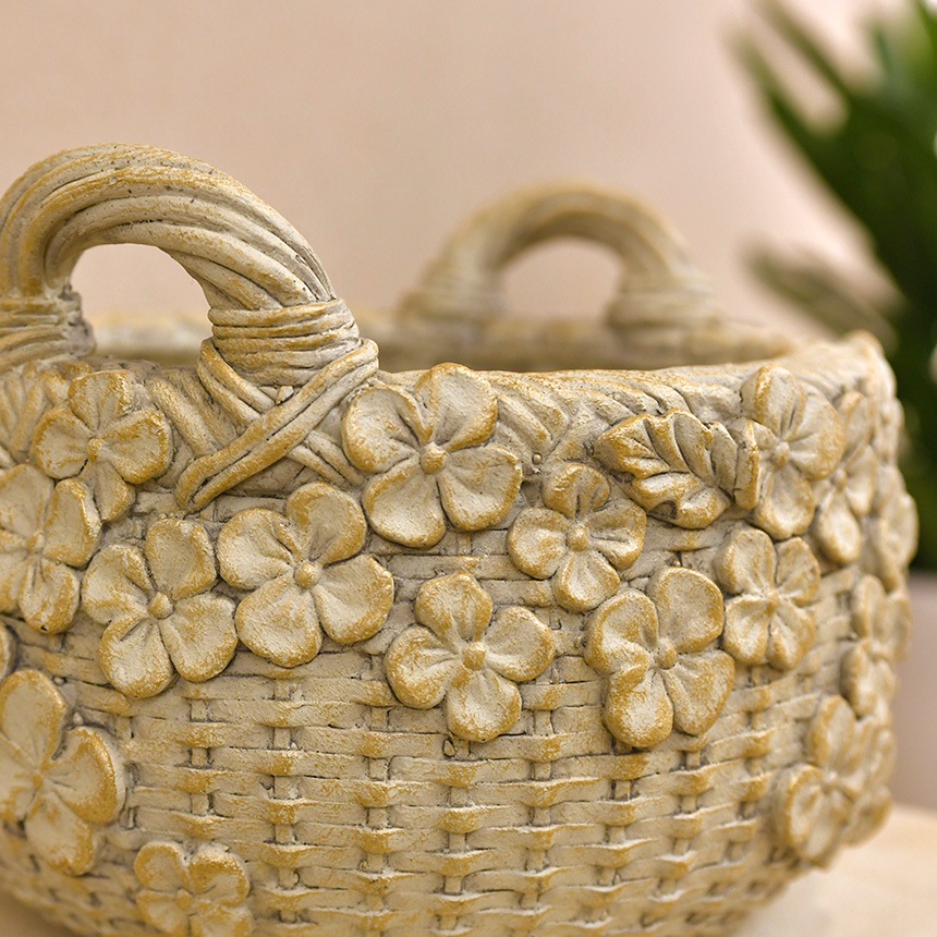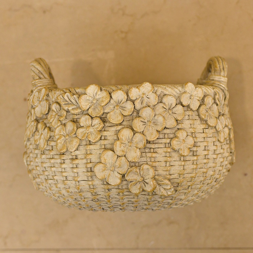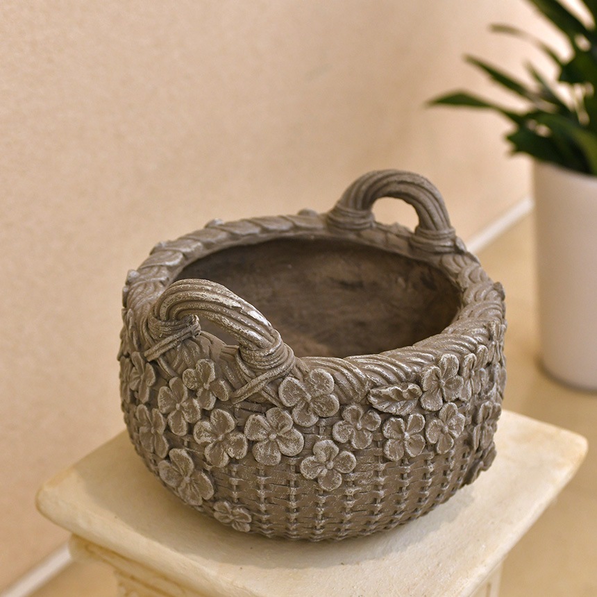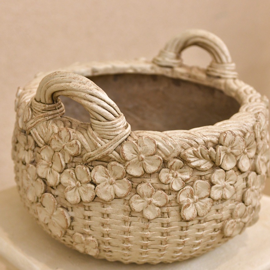 手作りの編みカゴを基調に、側面にフラワーモチーフとした可憐で幻想的なプランターです。