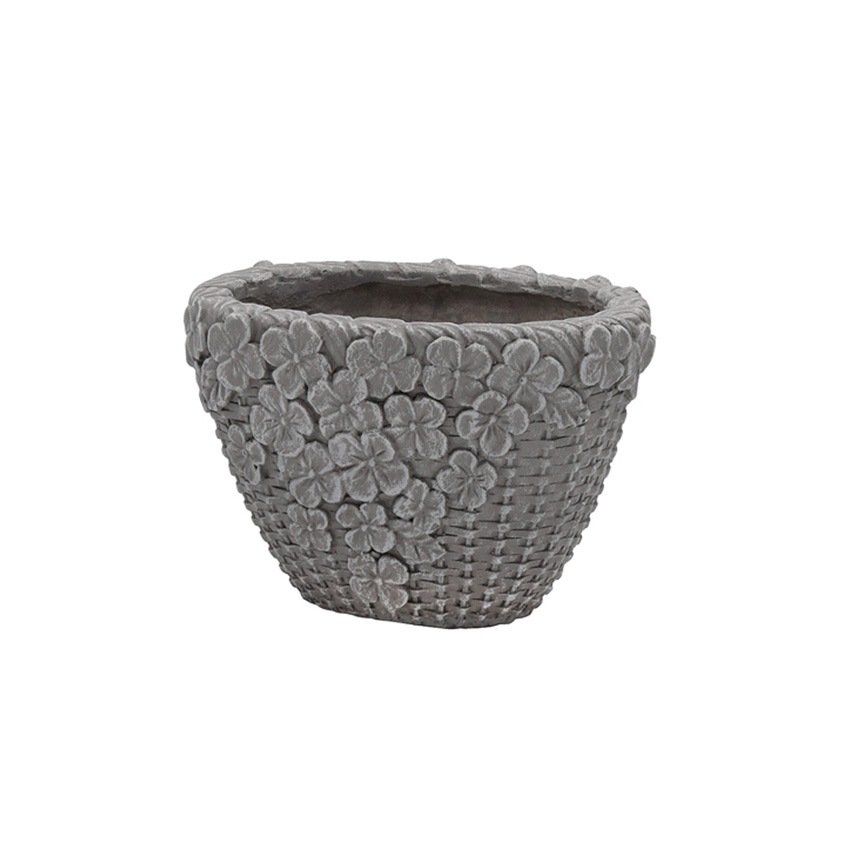 手作りの編みカゴを基調に、側面にフラワーモチーフとした可憐で幻想的なプランターです。