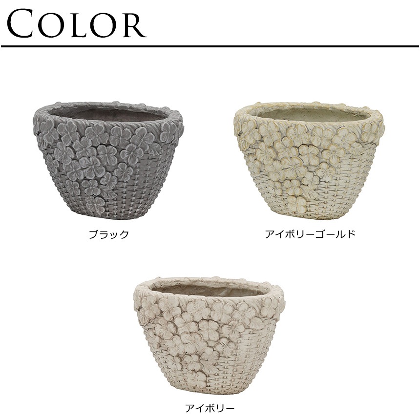 | 備考 | 手作りの編みカゴを基調に、側面にフラワーモチーフとした可憐で幻想的なプランターです。