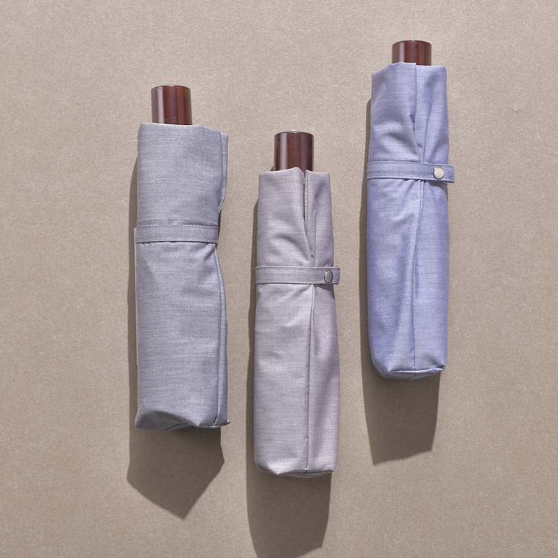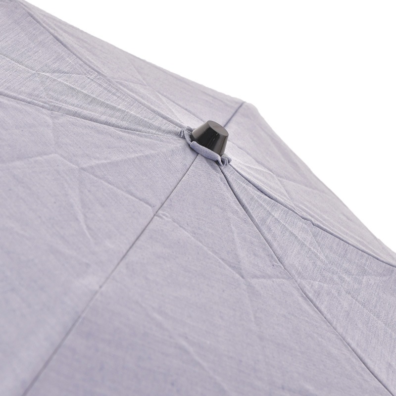 シャンブレー綿とポリエステルを交織させることにより、もたつきがないすっきりとしたシャンブレー素材を更に引き立て、開閉を繰り返す日傘にも耐えうる強度を実現しています。