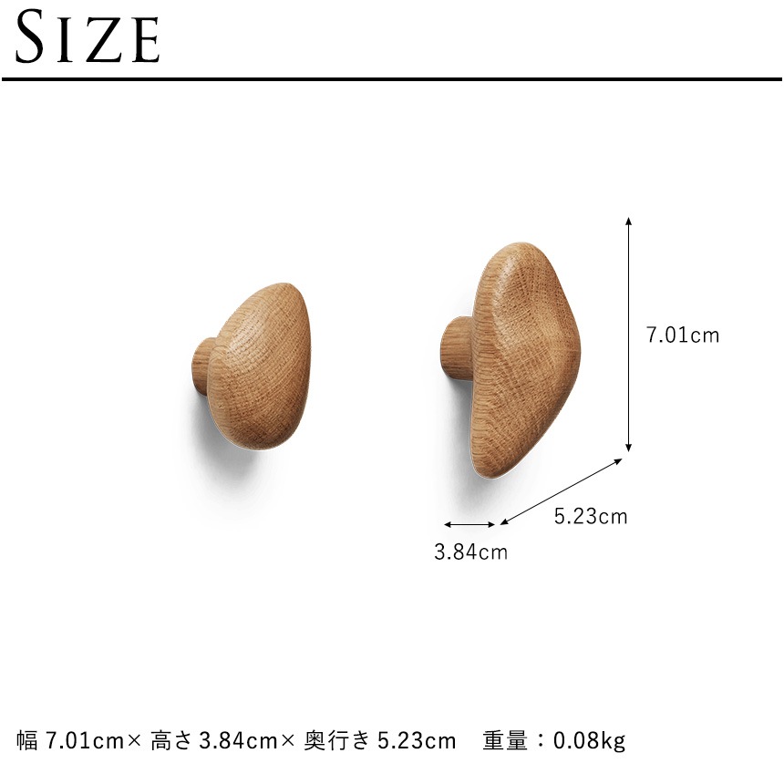 FSC認証を受けた無垢のトネリコ材から削り出され、オーガニックな質感を楽しめるフックです。