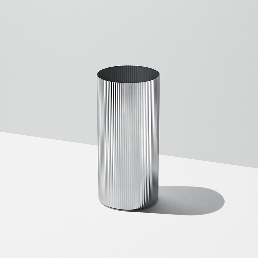 BERNADOTTE ヴェースは素材にステンレススティールを使用。丹念な手磨きにより完璧なまでの光沢を生み出しています。 ヴェースにはラージとミディアムの2つのサイズがあります。
