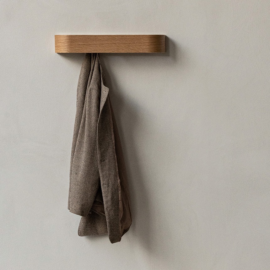 掛けたアイテムが生活感を感じさせないよう、フックは背面に隠れる構造。